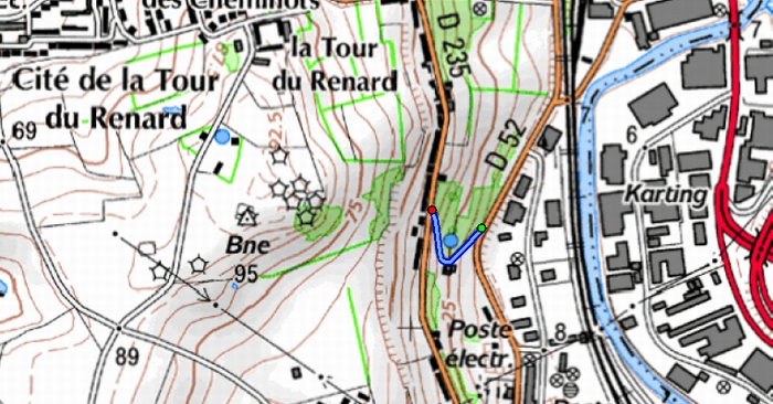 Entre la rue des Hauts-Fourneaux et la rue Edouard Vaillant en contre-bas, il y a « la Grimpette » (qui a donné son nom à l’arrêt de bus) : une pente de 200m à 11 % (maximum à plus de 20 %, altitude maximum à 36m).