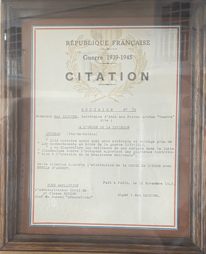 Entre deux, le Phénix symbolise la résurrection d’Outreau, détruite à environ 90 % par plus de 400 bombardements lors de la Seconde Guerre Mondiale — vous pouvez retrouver le Phénix sur le toit de la mairie ou dans le nom de la salle des fêtes.