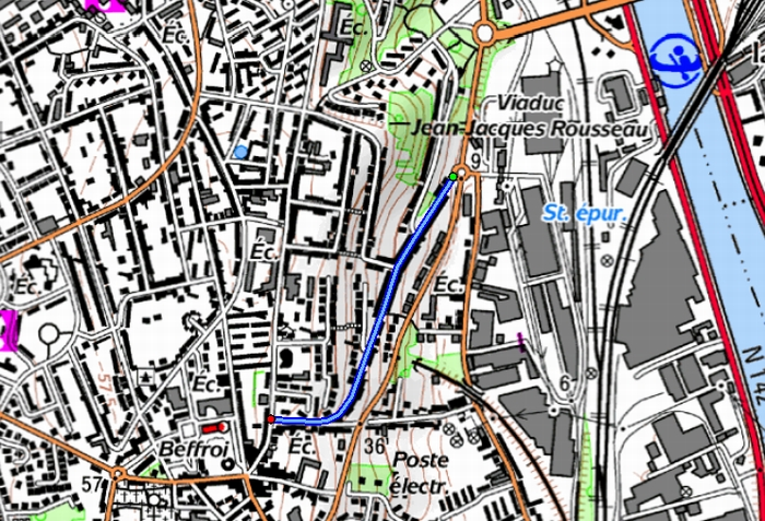 Entre la rue des Hauts-Fourneaux et la rue Edouard Vaillant en contre-bas, il y a « la Grimpette » (qui a donné son nom à l’arrêt de bus) : une pente de 200m à 11 % (maximum à plus de 20 %, altitude maximum à 36m).