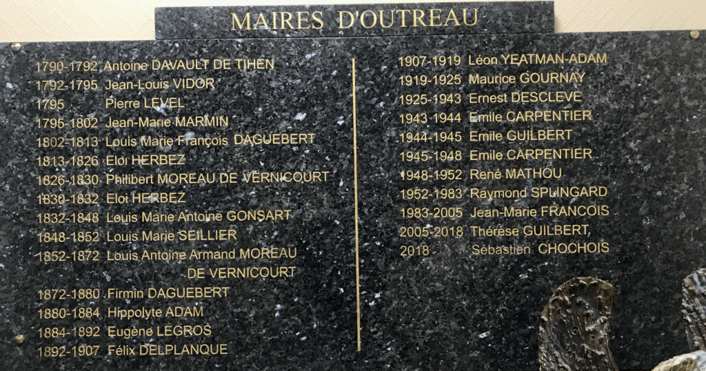 Liste des maires d’Outreau, affichée en mairie.